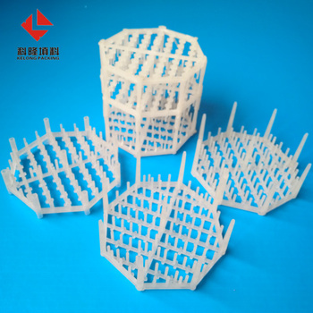 Produce all kinds of plastic random packing and structured packing with PE PP RPP PVC CPVC PVDF PTFE etc.Models include pall ring,rosette ring,polyhedral hollow ball,float hollow ball and so on.